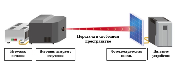 Рис. 1: Принцип работы оптической беспроводной системы передачи энергии