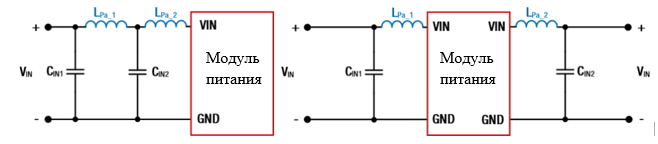 Паразитная индуктивность CIN (MLCC) не включена в анализ, поскольку это сравнение различных вариантов компоновки. Одни и те же MLCC использовались в качестве CIN как для линейной, так и для симметричной компоновки.